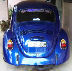 I received my 1971 VW Beetle as a 17th Birthday present and went about turning the plain white car into a show-stopper that is guaranteed to turn heads and blow ear-drums wherever it goes. It is currently sponsored by Volksbahn Autos who installed the new 1835cc engine and who carry out all upgrades and repairs. In its previous incarnation, the sound system, sponsored by Pioneer, recorded 145.7dB making it the second loudest Beetle in Australia. The major restoration job involved a total respray which took 3 months beginning in November 2001. In April 2002, I was in an accident that destroyed the engine, engine lid and bonnet among other things. It was all repaired and restored again and is now back on the road with even more performance, audio and aesthetic upgrades.