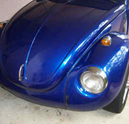 19th June 2003: Last week a friend damaged my car reversing out of a driveway. The muffler hit the beaver panel and damaged it all along the bottom as well as pushing the entire panel up and bending it near the engine cover. The engine cover couldn't even be opened! Seeing as this is not the first time that I am having this problem panel beaten, I am having a 1-2inch strip of the beaver panel removed along the bottom. Either end will be curved so that the cut is not so abrupt. It should look quite good. Hum-Bug went in on Monday 16th and I'm hoping to get her back before week's end so check back for pictures late tomorrow to see the before (above, with damage) and after shots!